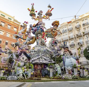Falla Sueca - Literato Azorín is one of the "Special Category" Fallas monuments in the Ruzafa neighborhood. These are the biggest and most expensive sculptures in the festival, often reaching several stories high.
